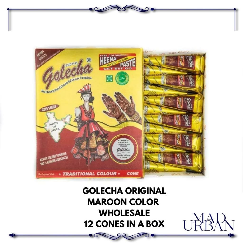 [1.1 WHOLESALE] GOLECHA One Box 12 Henna Cones Cherry & Maroon Color Marudani Kon Henna Art Mad Urban