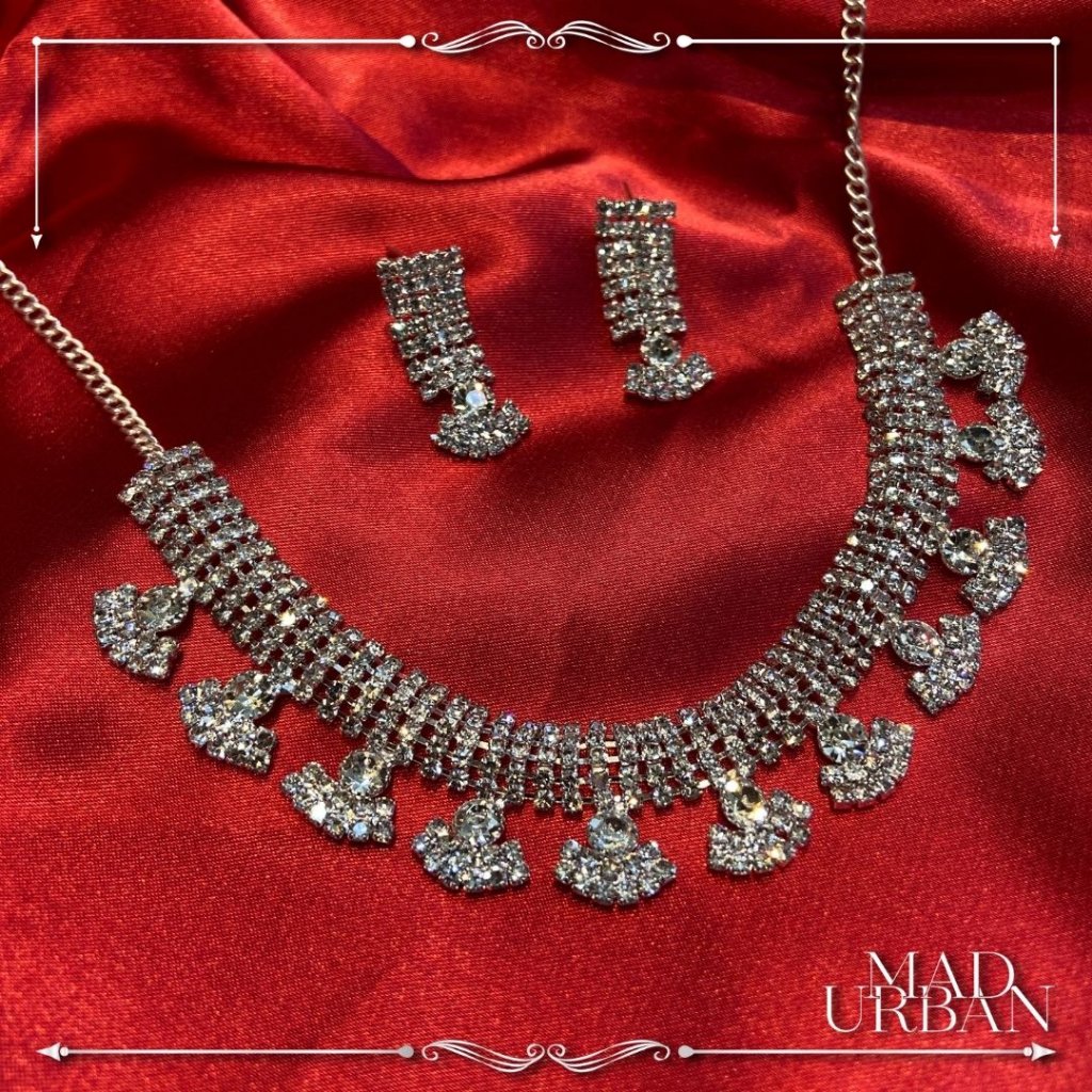 [CLEARANCE DAY] Silver Rhodium Necklace with Earring Choker Rantai Leher Perempuan India Bollywood Mad Urban
