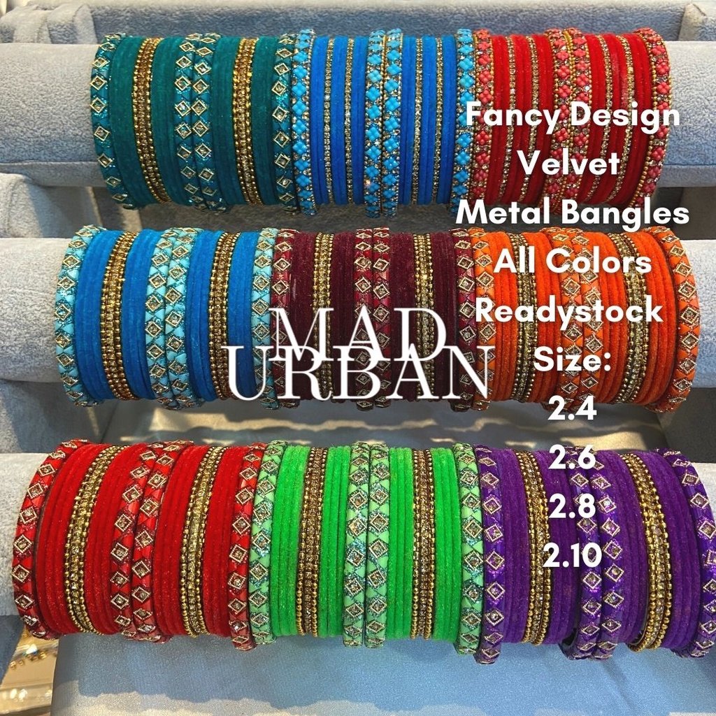 Fancy Velvet Metal Bangle Bright Color Bangles CLEARANCE SALE Gelang Bollywood Size 2.4 to 2.10